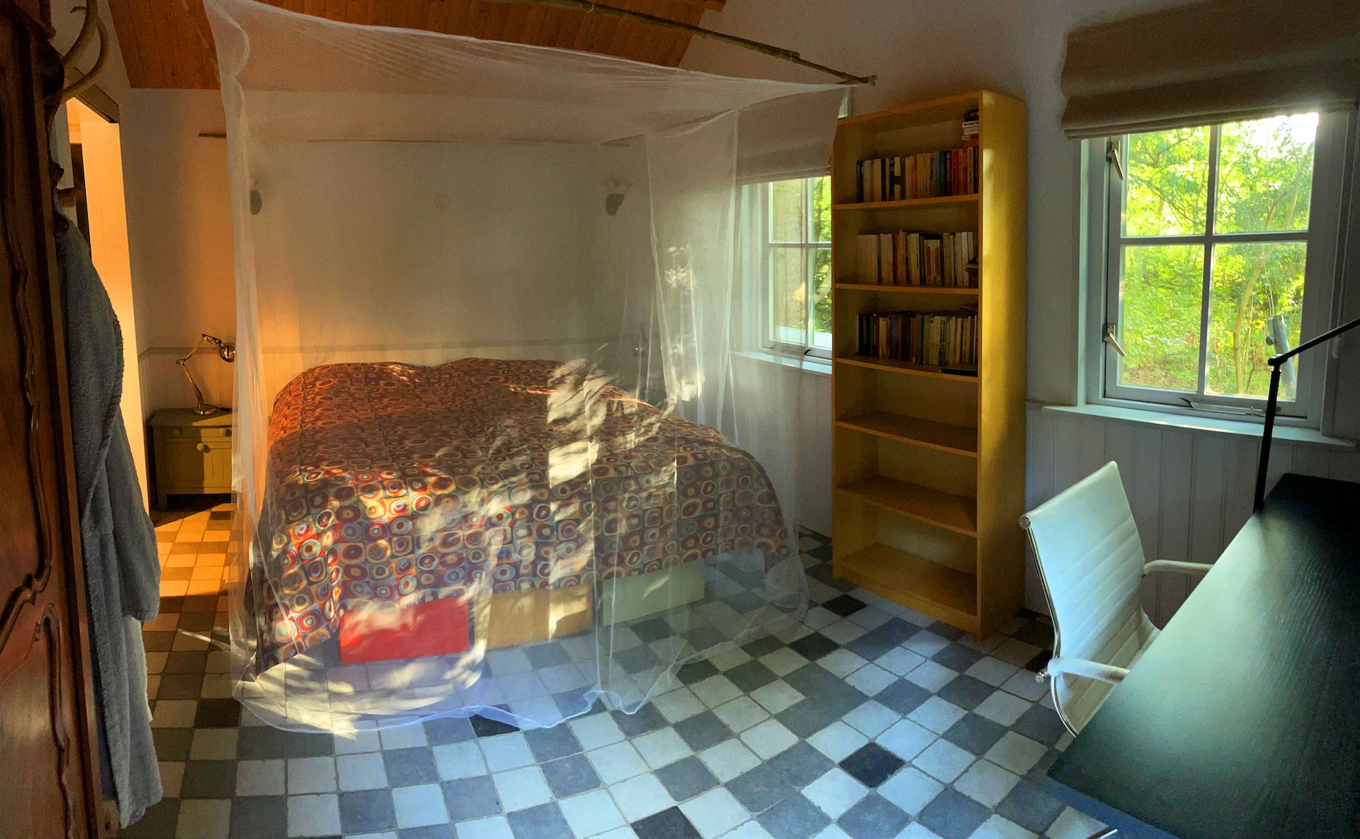 Ruime slaapkamer annex studeerkamer met deur naar het terras